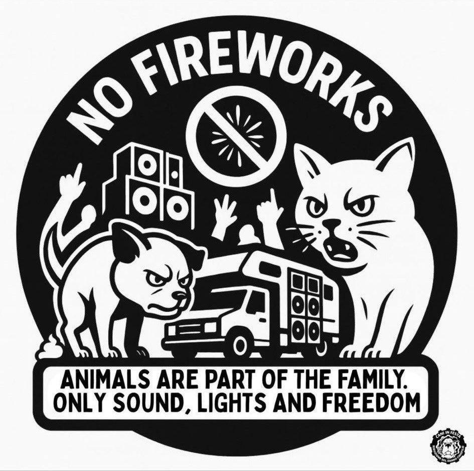 ➡️Se hai voglia di aiutarci a diffondere questa tematica anche verso chi frequenta i free party ti chiediamo di mettere sui flyer delle feste che organizzi il logo allegato per far capire a chi verrà alla festa che l’uso dei fuochi d’ artificio non è condiviso.
