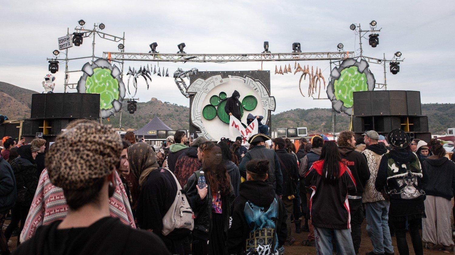 The entire area was militarized and under heavy control in the days leading up to the party. On December 30th, even before entering the party, one of our vans carrying part of the sound system was stopped late in the morning by the cops, searched, and placed under administrative seizure. After countless complications, and only by paying a €3000 fine, we managed to get the van released and bring it to the party. On the way out, the Guardia Civil stopped and detained some of our comrades for several days, seizing all their equipment and the van transporting it.